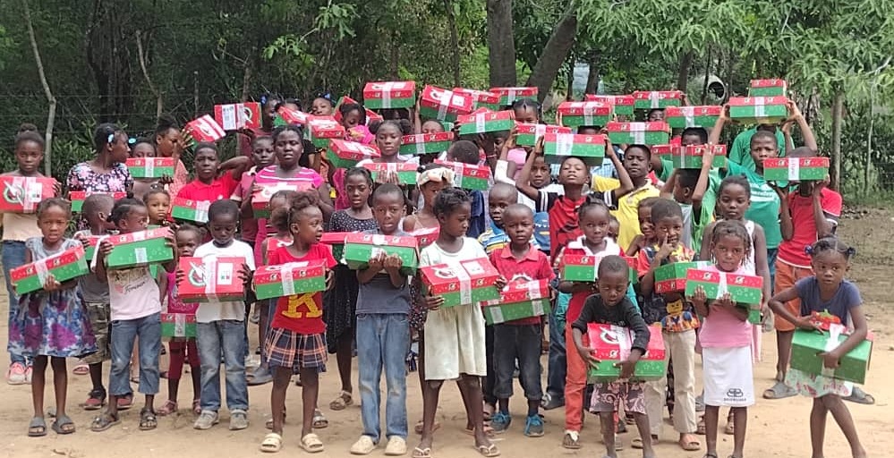 Children in Pignon receive shoe boxes from Operation Christmas Child
